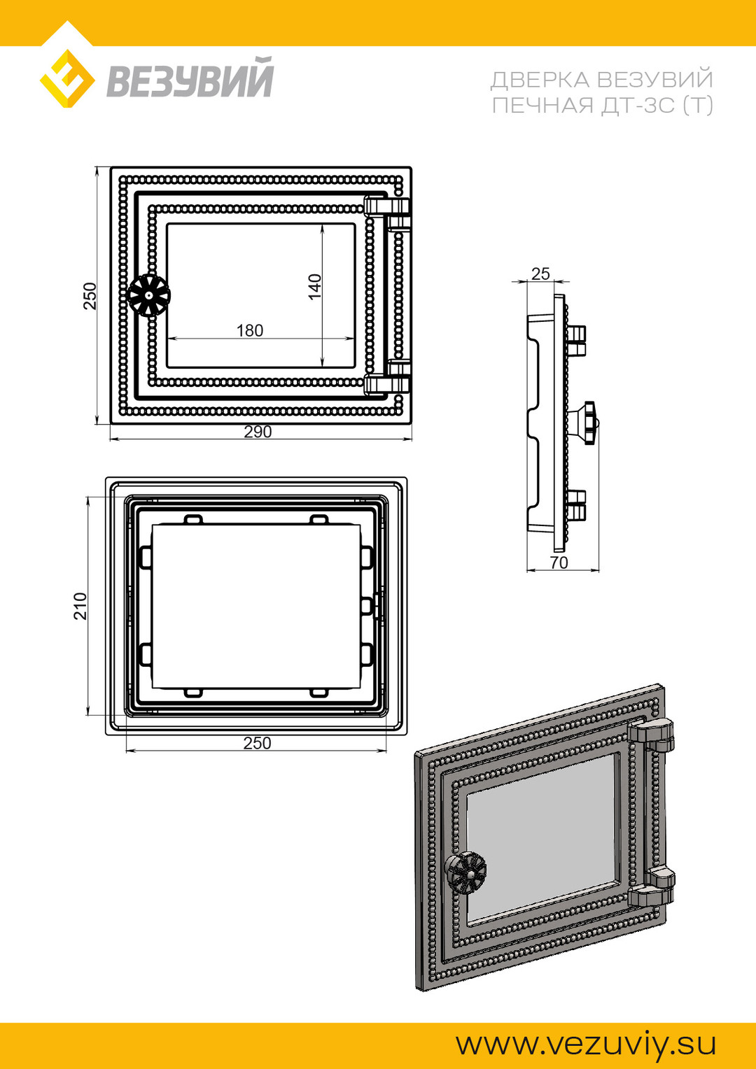 Дверка печная ДТ-3 С Антрацит (Т) предназначена для установки в бытовых чугунных, стальных или кирпичных печах , каминах и печных комплексах.