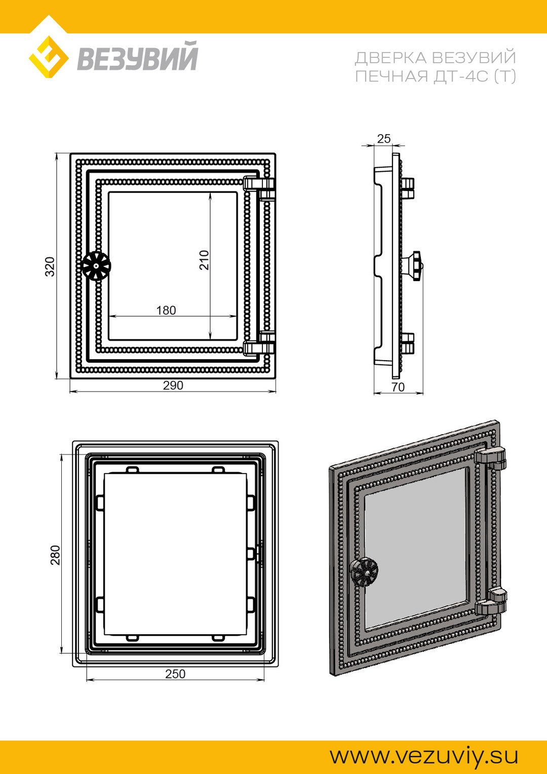 Дверка печная ДТ-4 С Антрацит (Т) предназначена для установки в бытовых чугунных, стальных или кирпичных печах , каминах и печных комплексах.