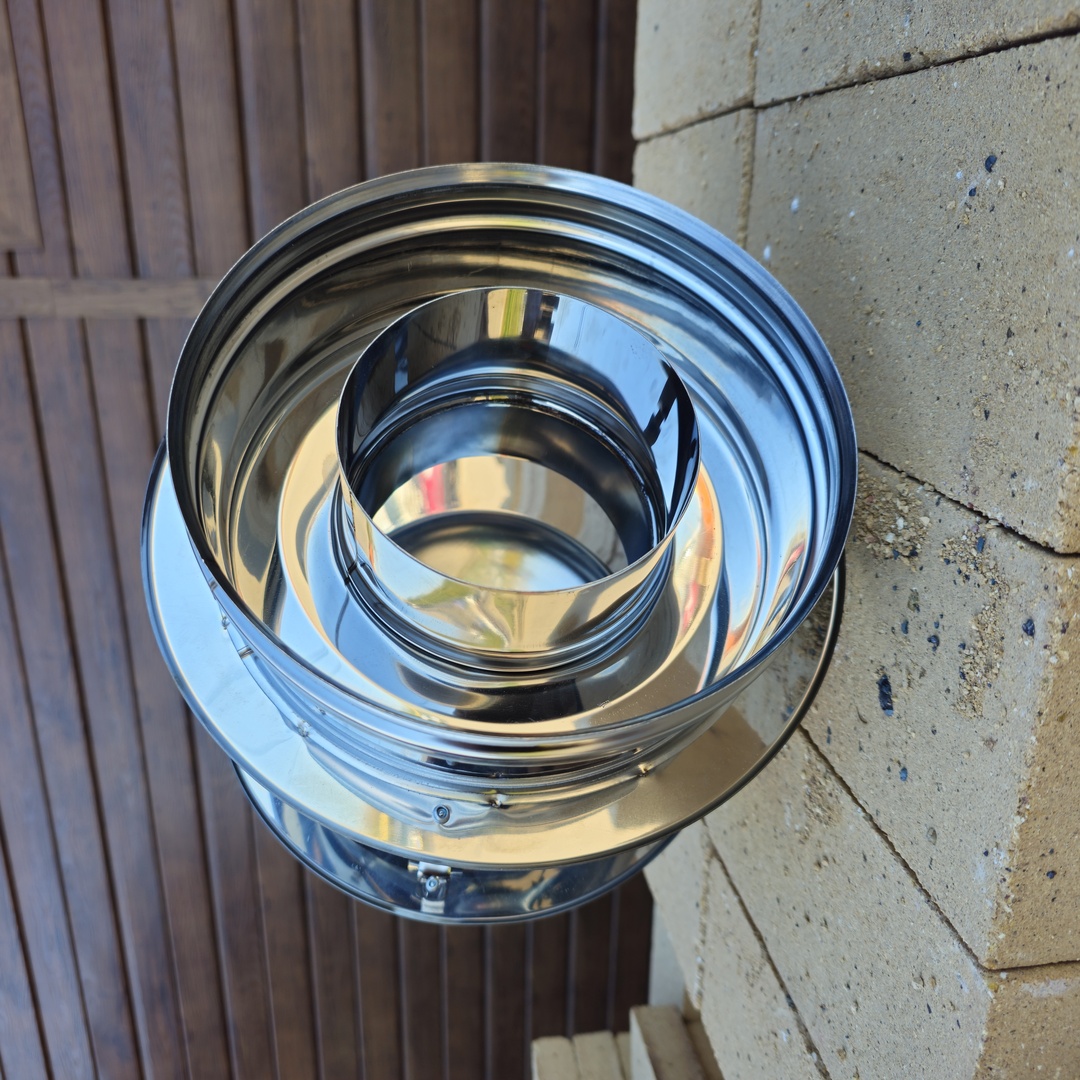 Завершающий элемент дымового канала, закрывает торцы сэндвича и предохраняет от атмосферных осадков. Внутренний контур изготовлен из нержавеющей стали AISI430 толщиной 0,5 мм. Холодная формовка раструбного соединения с идеальной геометрией и газоплотностью. Лазерная сварка встык обеспечивает тонкий и прочный шов, увеличивая в разы срок эксплуатации. Рабочая температура до 450°С.