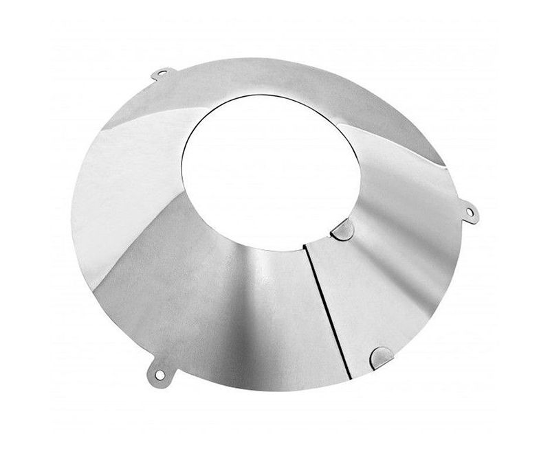 Фланец - это декоративный элемент дымоходной системы. Фланец сгибается на необходимый размер и фиксируется на трубу. Изготавливается из нержавеющей стали марки AISI 430 толщиной 0,5 мм.