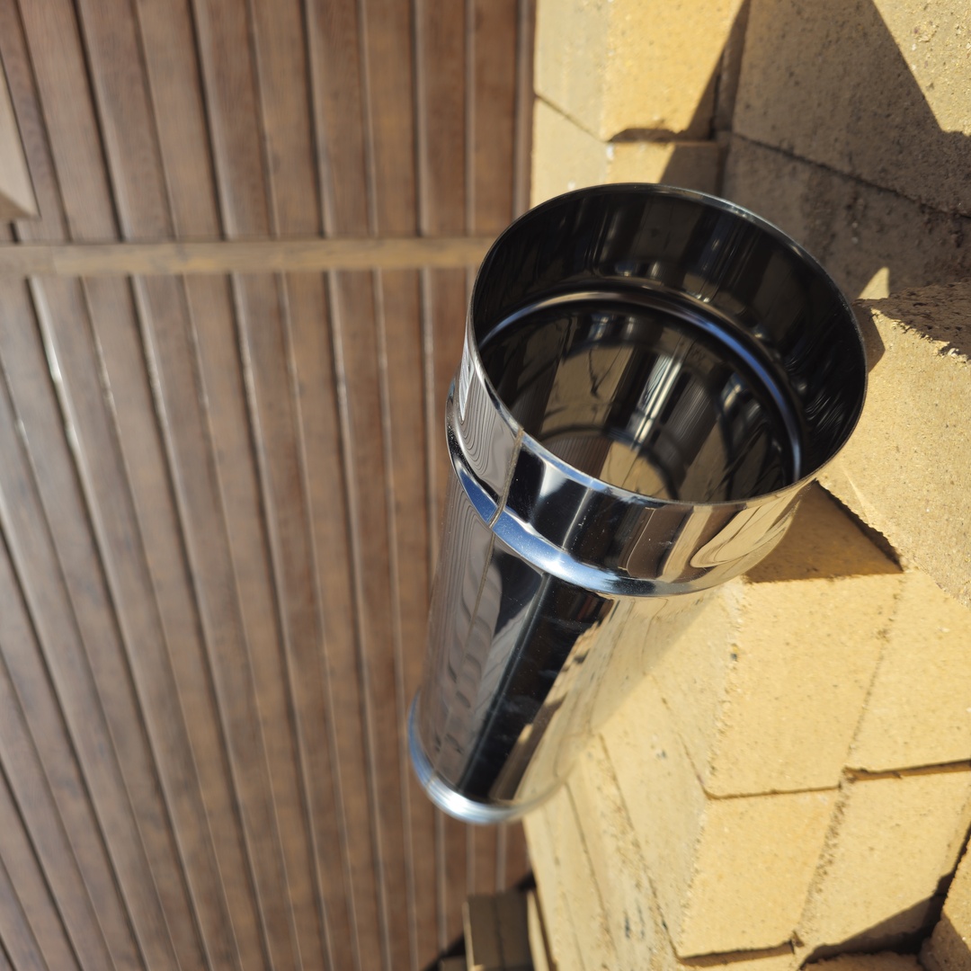 Дымоход является основным элементом дымоходной системы и предназначен для отведения продуктов сгорания на прямых участках. Нержавеющая труба длиной 0,5 метра изготовлена из полированной нержавеющей стали марки AISI 430, толщина металла 0,5 мм.