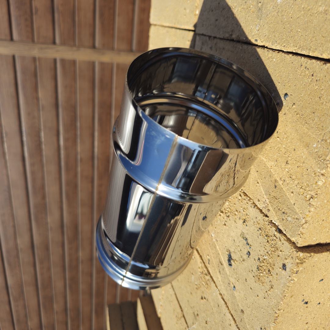 Элемент представляет собой одностенную трубу длиной 0,25 м. Дымоход изготовлен из полированной нержавеющей стали марки AISI 430, толщина металла 0,8 мм.