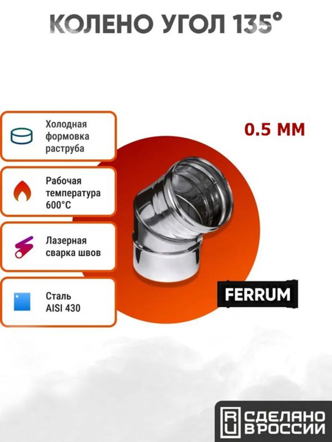 Колено угол 135° 2 секции AISI 430/нерж. 0,5 мм Ferrum