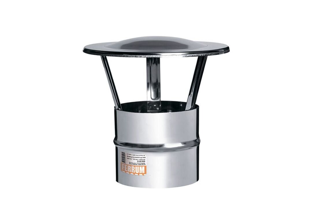 Зонт К изготовлен также как и все элементы дымоходной системы Ferrum из нержавеющей стали марки AISI 430, толщина металла 0,5 мм.