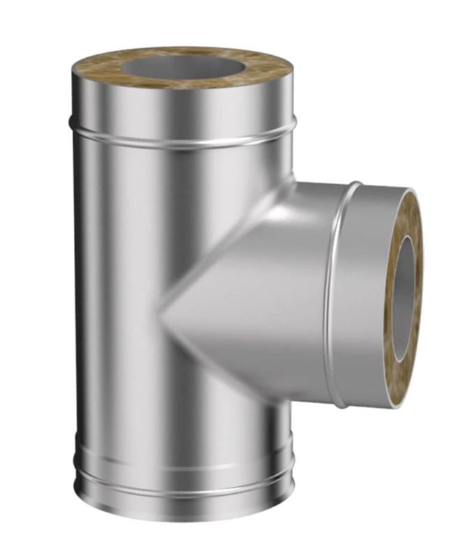 Сэндвич-тройник предназначен для соединения дымоотвода с основным каналом дымохода и установки конденсатоотвода. В комплекте с заглушкой. Внутренняя труба изготовлена из нержавеющей стали толщиной 0,5 или 0,8 мм (матовая), а внешняя из оцинкованной стали толщина 0,5 мм. Набивка сэндвича - базальт. Диаметры в наличии (внутри матовая нержавеющая сталь 0,8 мм, снаружи оцинкованная сталь 0,5 мм): 115 мм (внутри 115, снаружи 200 мм), 120 мм (внутри 120 мм, снаружи 200 мм), 150 мм (внутри 150 мм, снаружи 250 мм), 200 мм (внутри 200 мм, снаружи 300 мм).