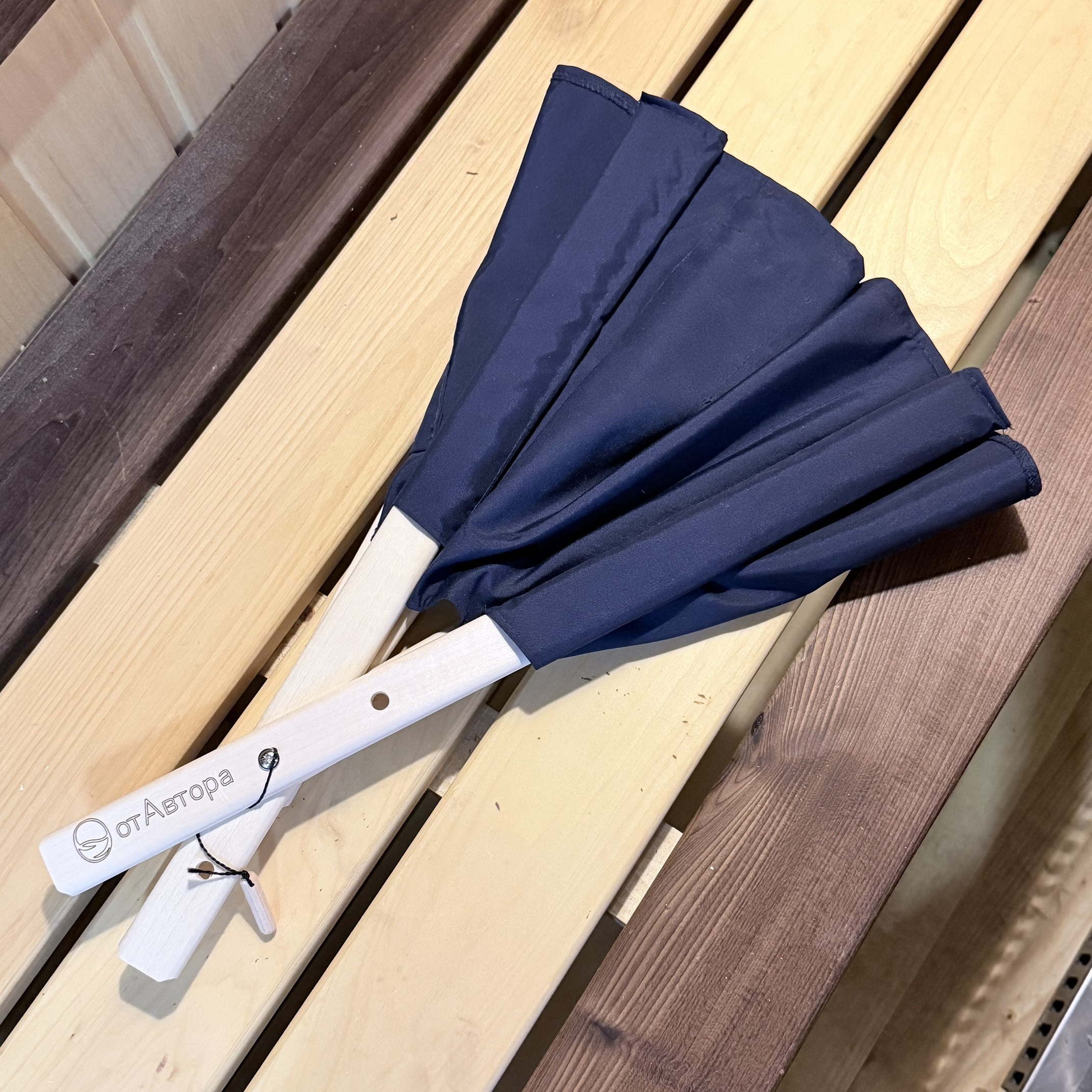 Веер для разгона пара ручной работы с каркасом из липы. Липа не быстро нагревается, не выделяет вредные вещества и смолы, поэтому подходит для банного инвентаря.