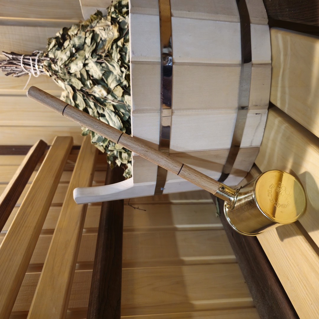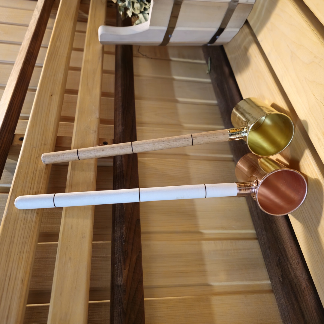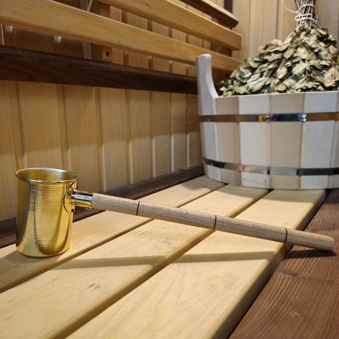 Изящный банный ковш из латуни объемом 200 мл сочетает в себе прочность и благородный блеск металла. Емкость аккуратно отлитого ковша плавно переходит в удобную ручку, обеспечивая уверенный хват и комфорт при использовании. Латунная поверхность гладкая на ощупь, с тонким полированным блеском, который подчеркивает винтажный или роскошный стиль бани.