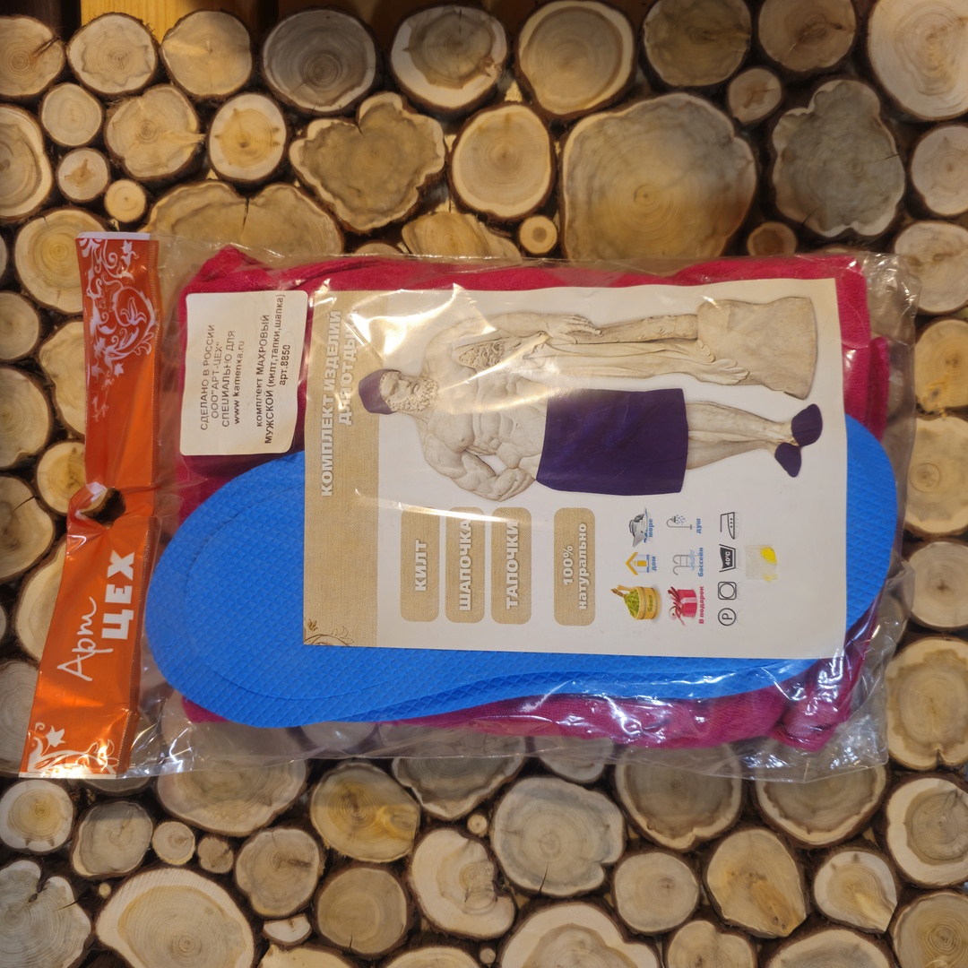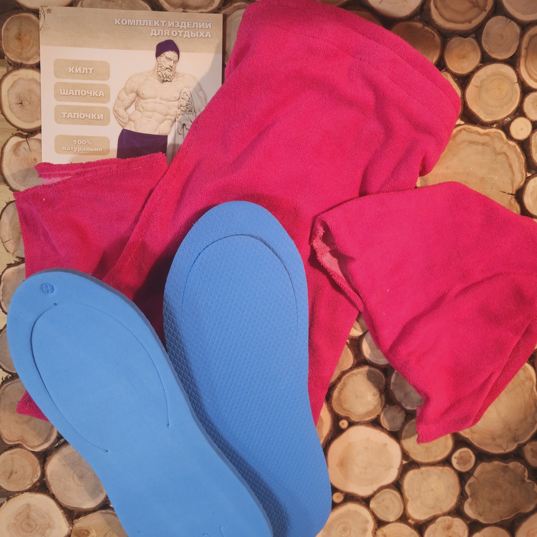 Набор махровый мужской — килт + шапка + тапки — уютный комплект для бани и отдыха.
