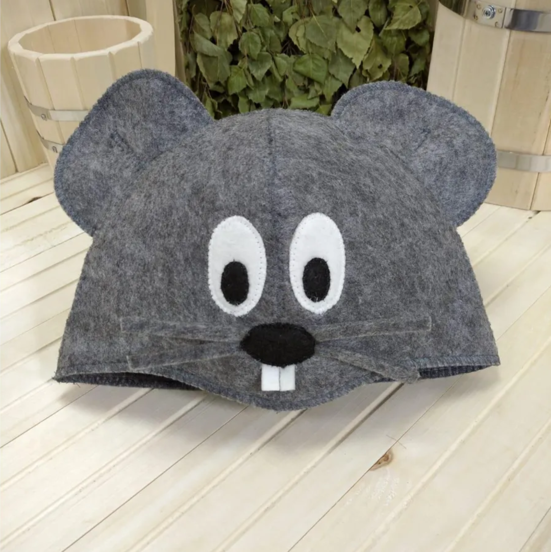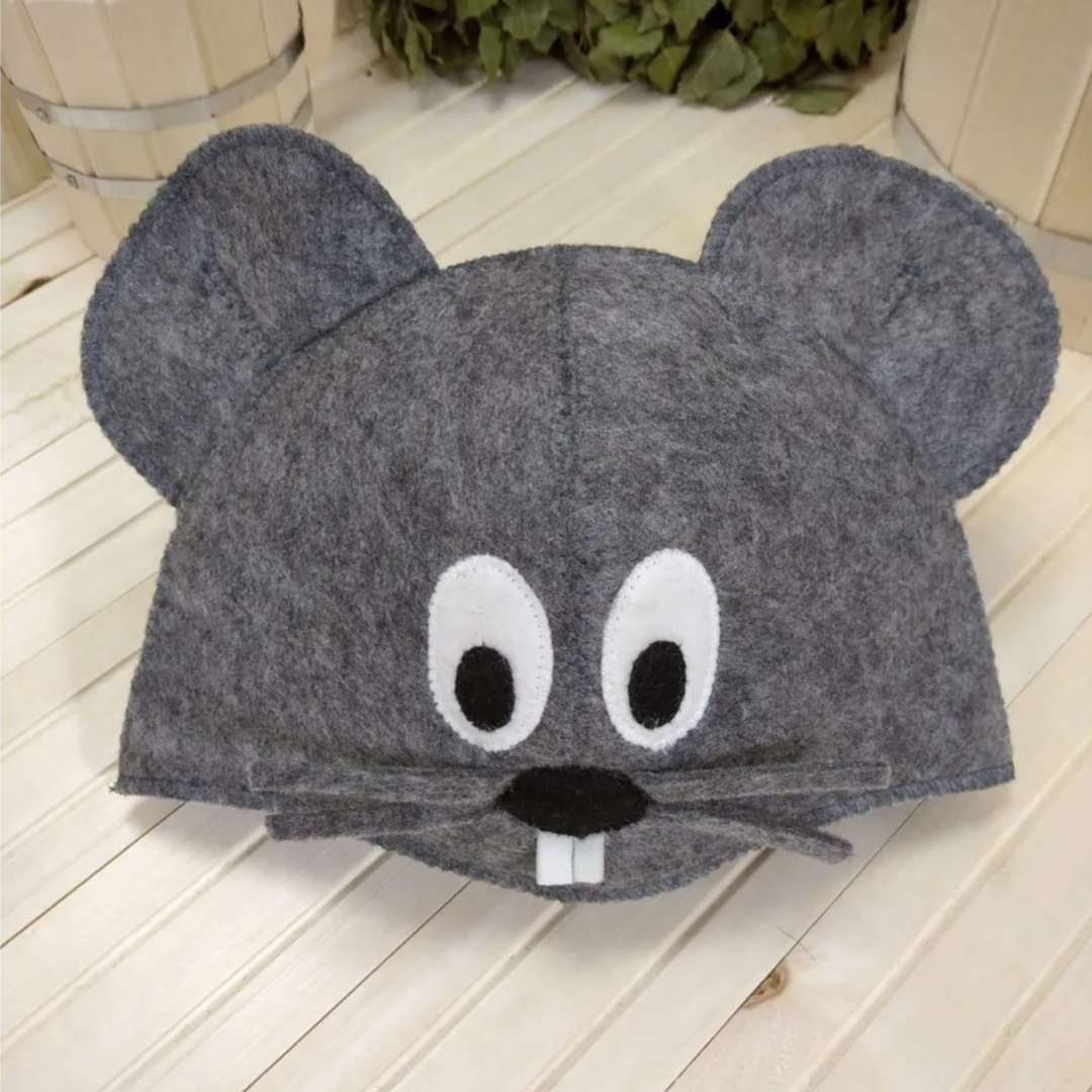 Такая оригинальная банная шапка станет неординарным подарком и подарит хорошее настроение Вам и Вашим близким. Шапка изготовлена из войлока серого цвета.