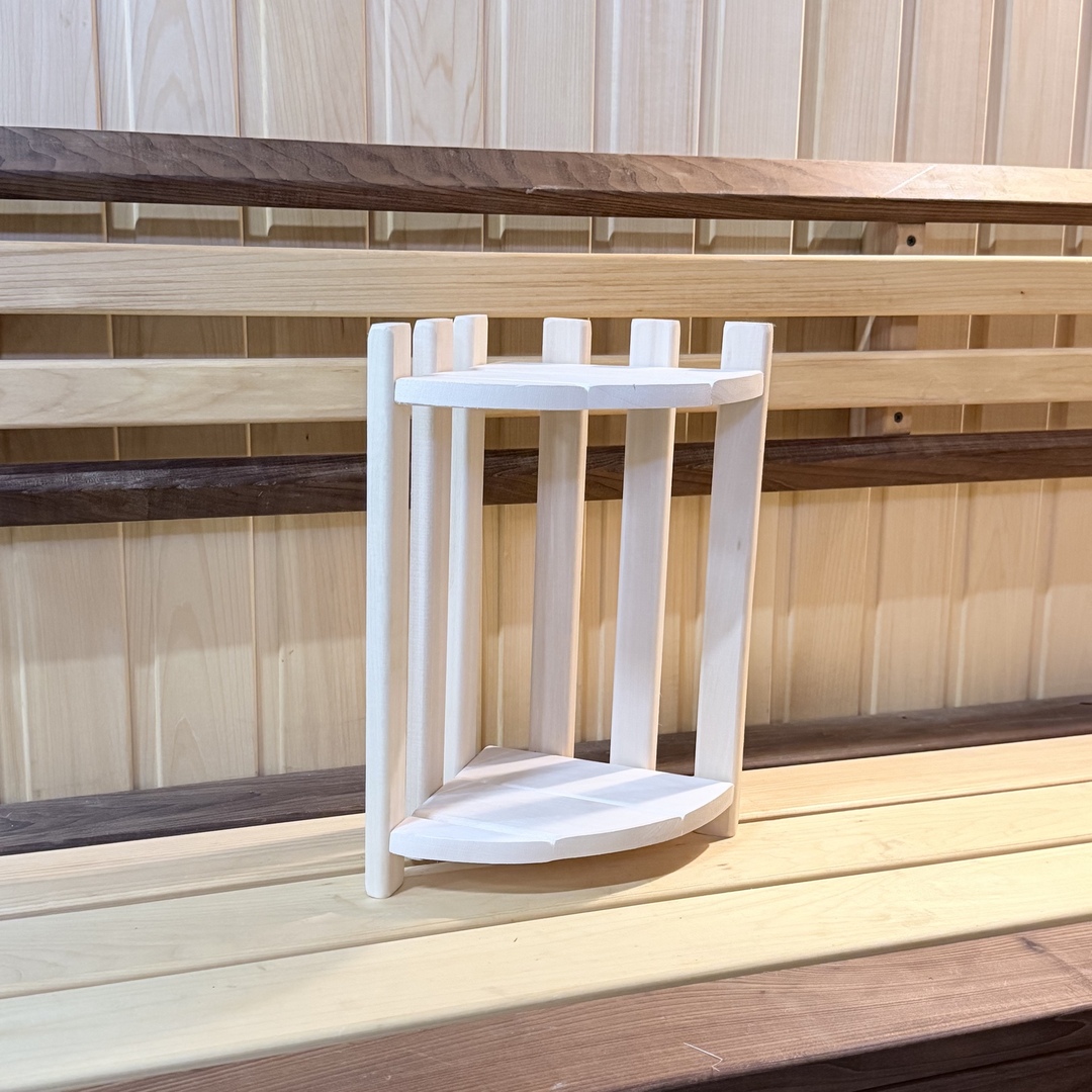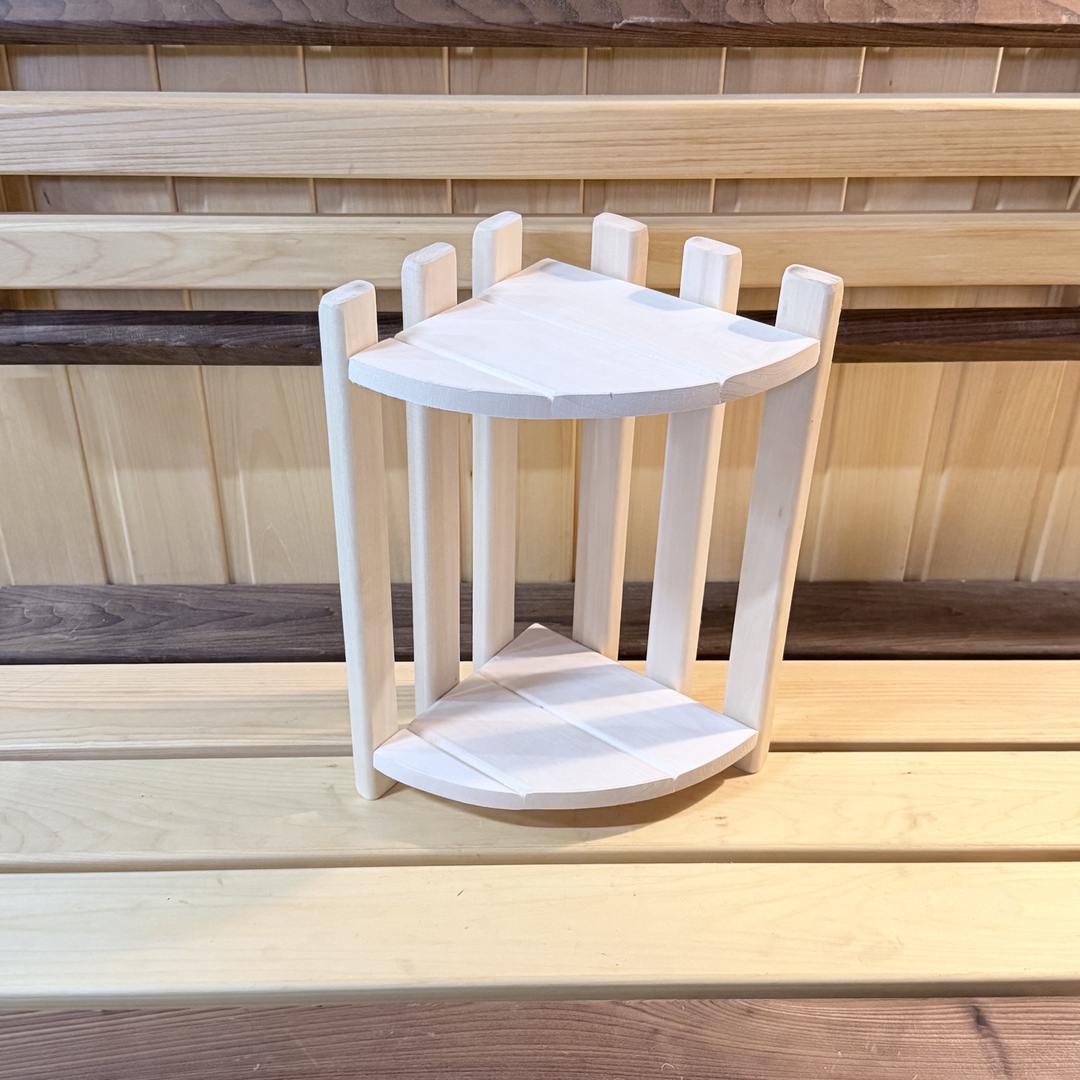 Угловая полка с двумя ярусами. Изготовлена из липы.