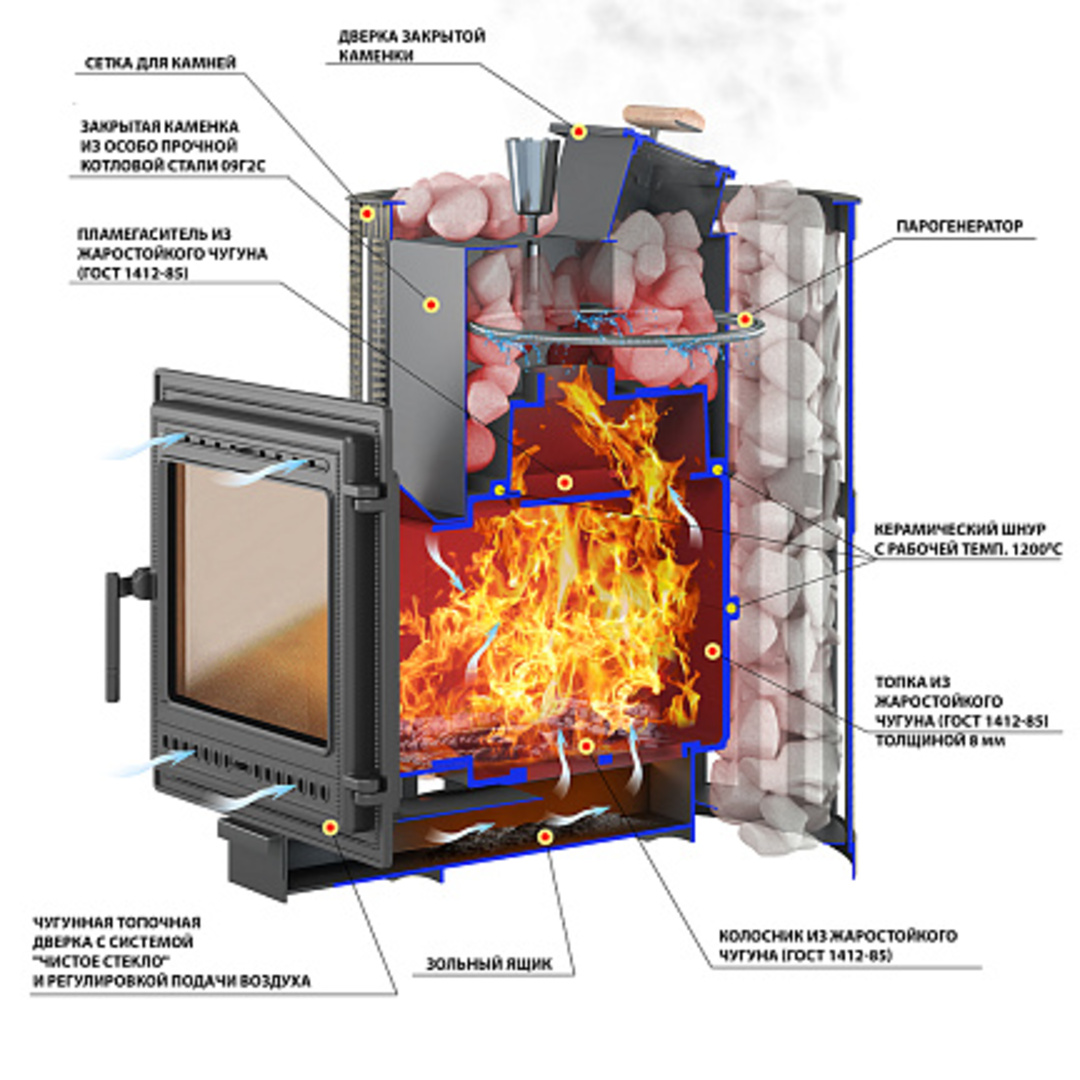 Материал закрытой каменки: особо прочная котловая сталь (09Г2С)