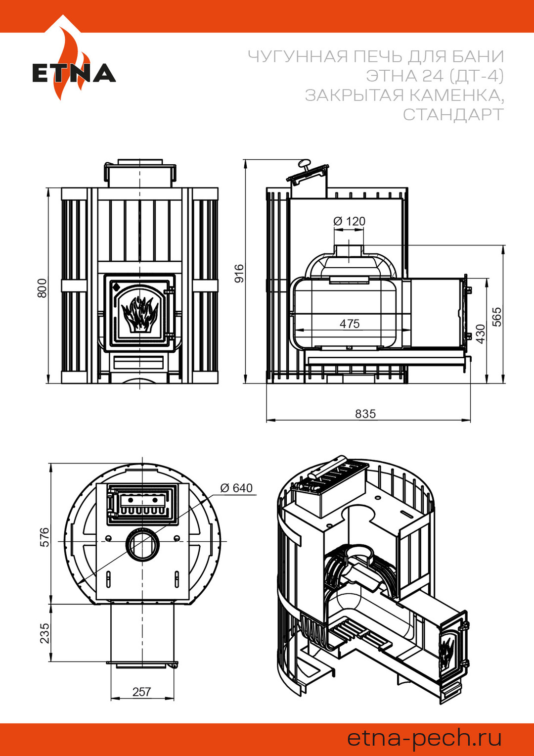 Этна 24 (ДТ-4) Закрытая каменка, Стандарт чугунная печь для бани