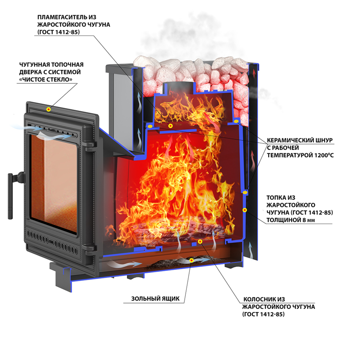 Материал топки: жаростойкий чугун (ГОСТ 1412-85)