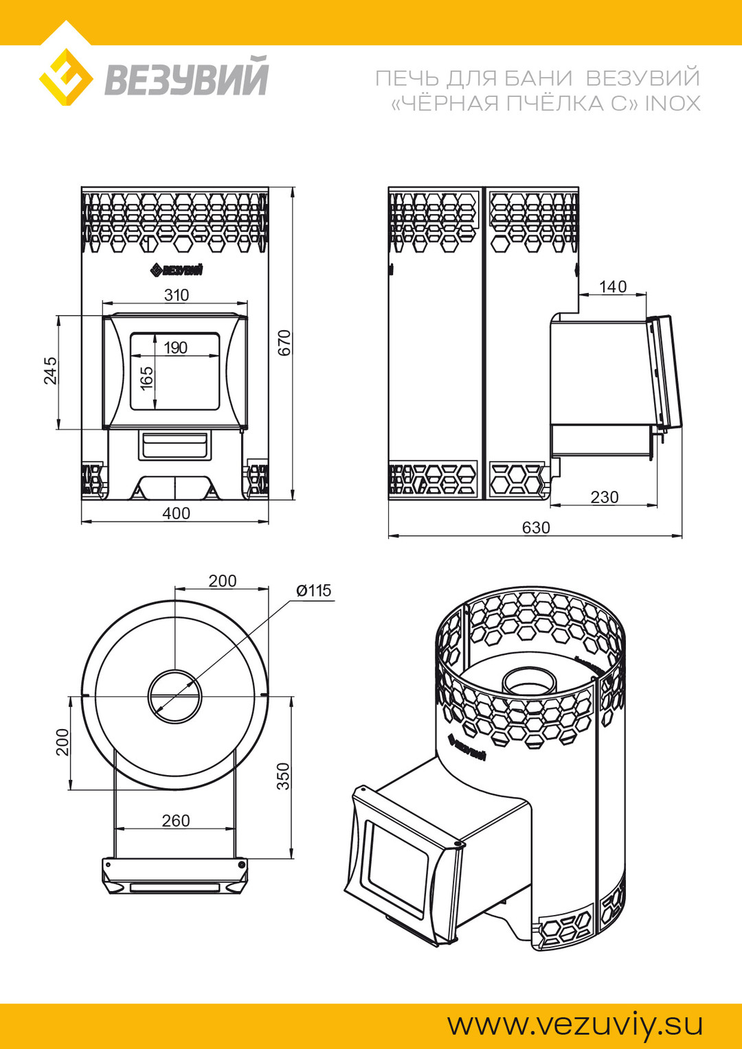 Печь для бани Черная пчёлка — современная стальная печь для бани, созданная для эффективного и комфортного прогрева парилки любого размера.