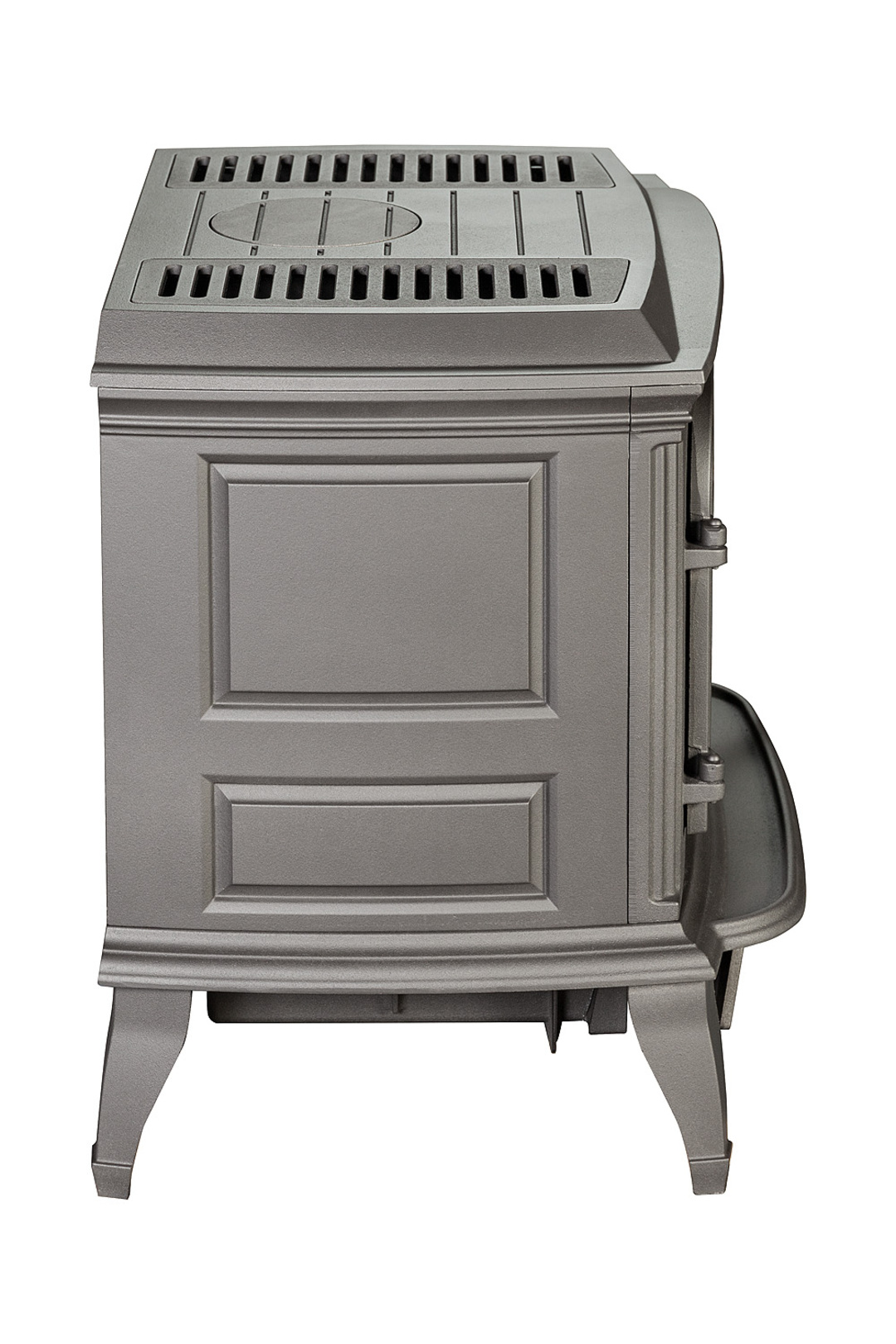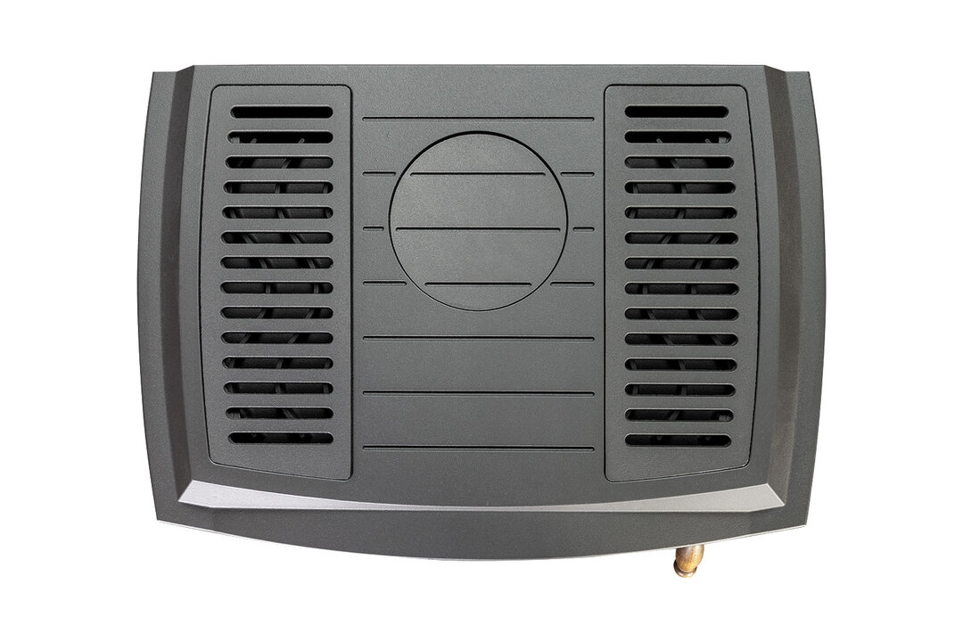 Имеет широкую топку которая позволяет загружать дрова длиной более 50 см. Стильный ограничитель дров, предотвращает выпадения углей из топки во время дозагрузки.