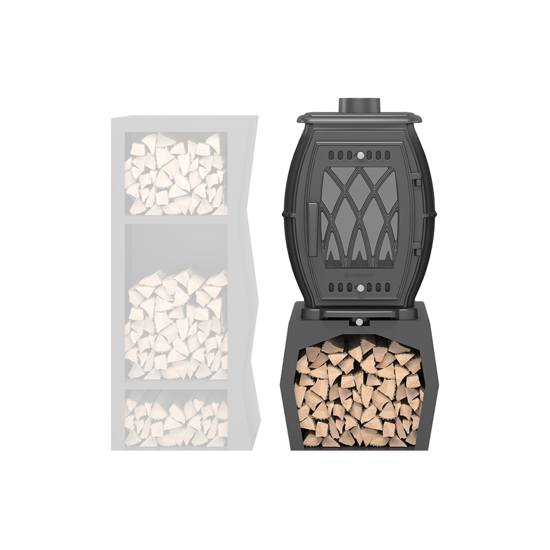 Печь-камин Везувий ВХ-09М "Антрацит" с дровником представляет собой идеальное сочетание элегантного дизайна и высокой функциональности, что делает её отличным выбором для создания уюта и тепла в вашем доме. Изготовленная из качественного жаростойкого чугуна с толщиной стенок от 6 до 8 мм, она обеспечивает надежную защиту от перегрева и долговечность в эксплуатации. Эта модель предназначена для обогрева помещений объемом до 180 м³, что позволяет вам наслаждаться комфортом и теплом в достаточно больших помещениях.