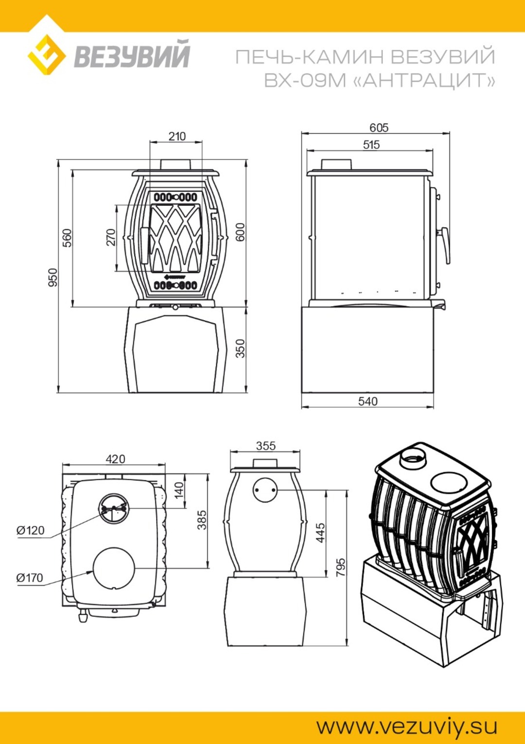 BX-09M печь-камин чугунный до 180 м3 антрацит