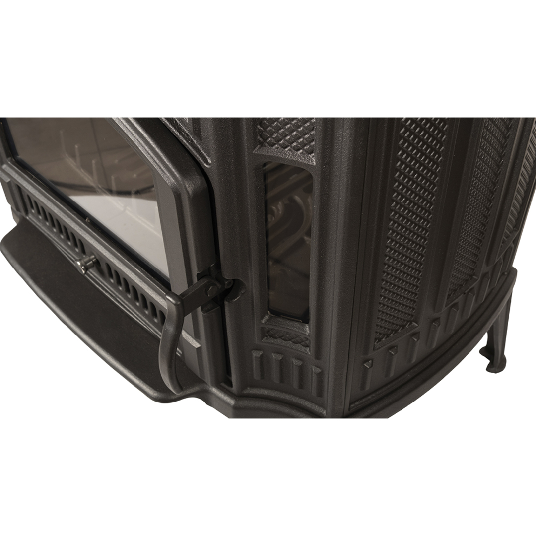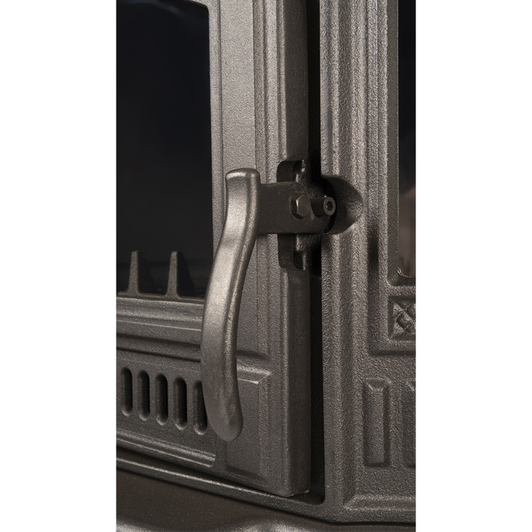 - Широкий обзор пламени: стекло двери диагональю 40 см и дополнительные боковые вставки со стеклом расширяют обзор. Огнеупорная стеклокерамика выдерживает рабочие температуры до 800°C.