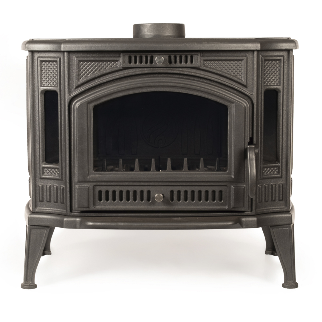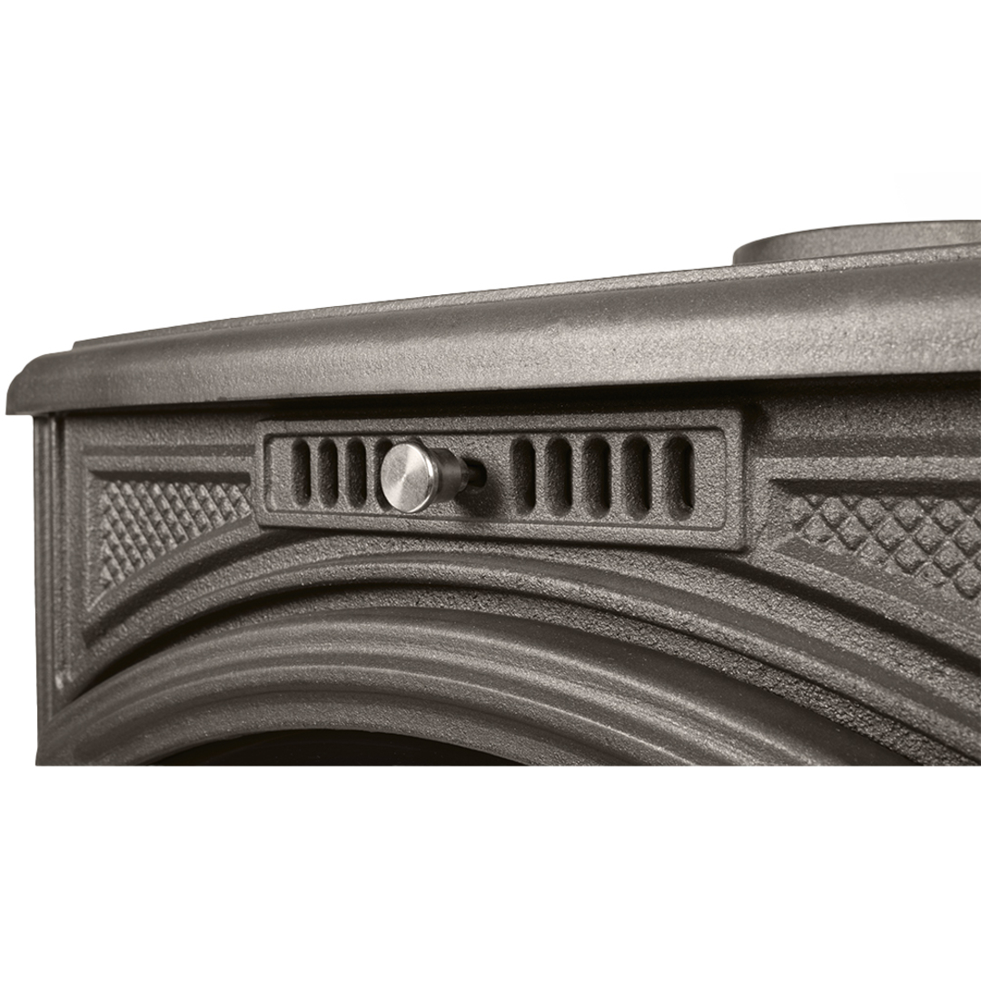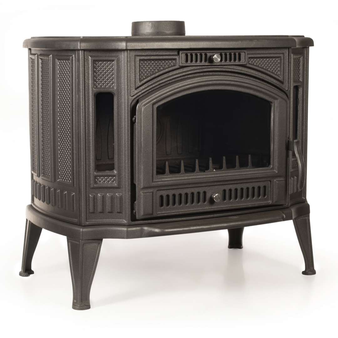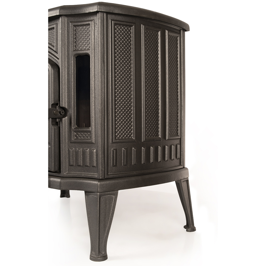 Изготавливается из прочного чугуна толщиной 8 мм. Чугун хорошо переносит нагрев и практически не расширяется со временем, обладает высокой теплоотдачей и мягким тепловым излучением, что обеспечивает долгую и надежную работу. Такое сочетание долговечности материала и плавных линий дизайна делает камин особенно привлекательным.