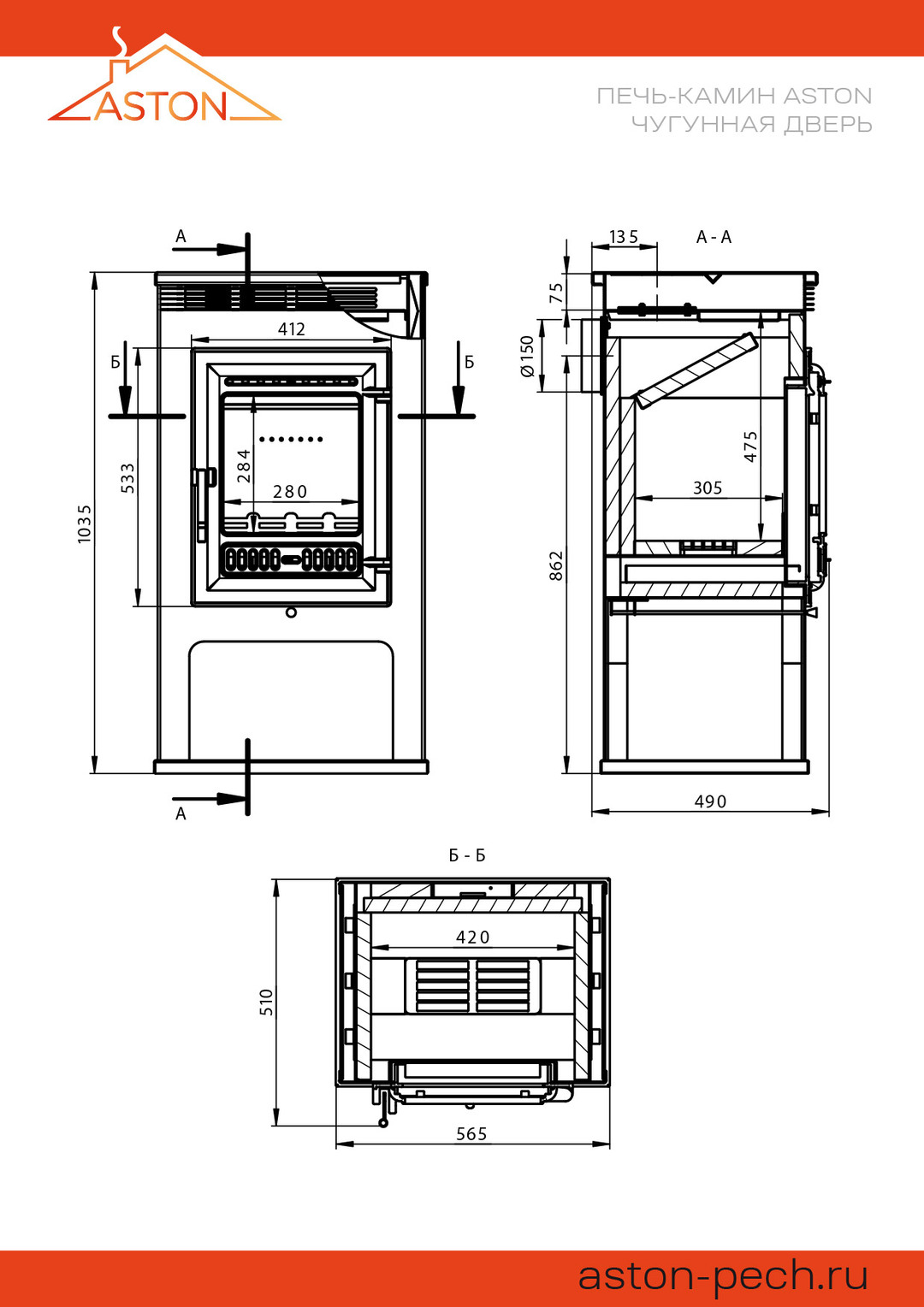 Диаметр дымохода: 150 мм