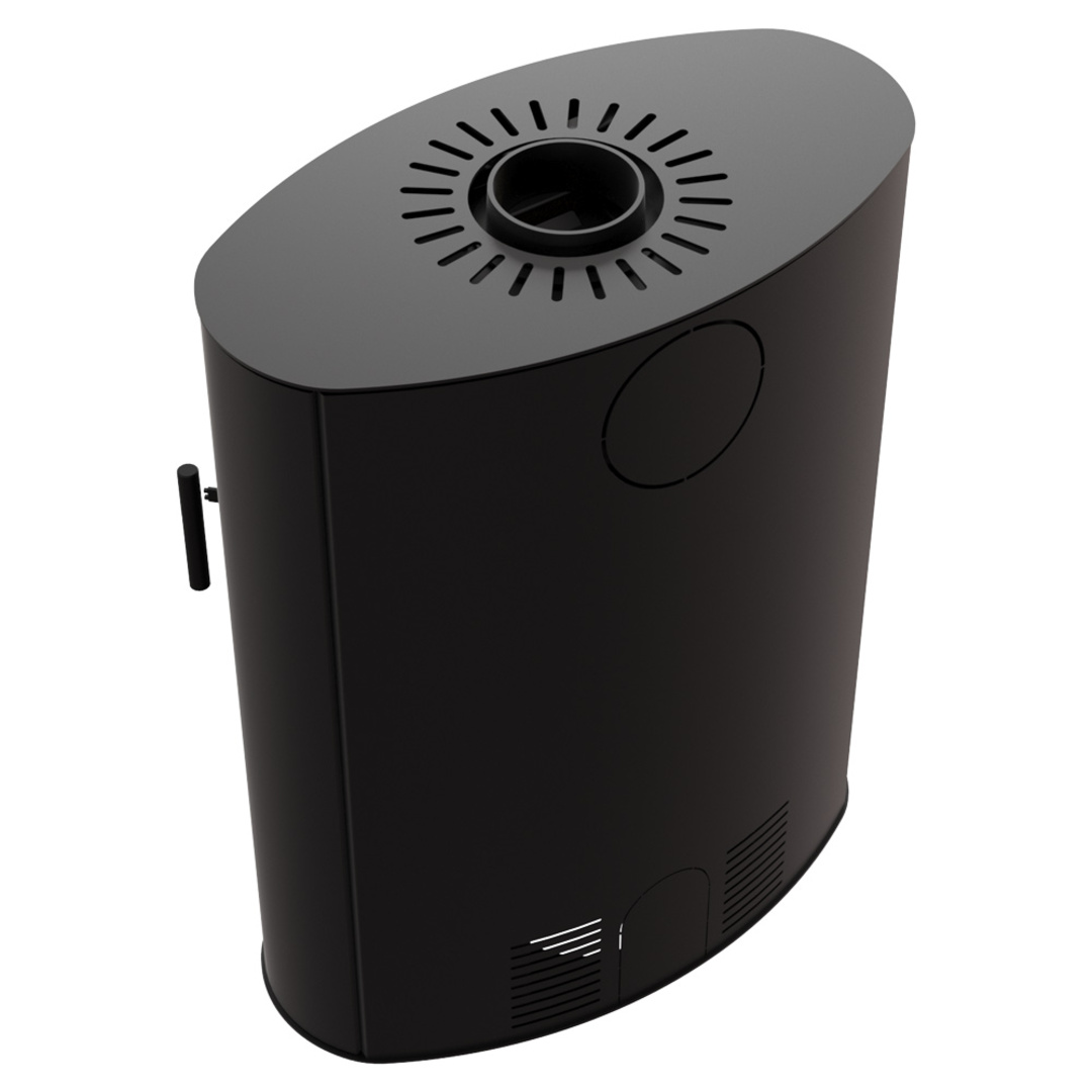 Камин изготовлен из жаропрочной стали и оснащено термостойким стеклом, выдерживающим высокие температуры. Удобная система подачи воздуха позволяет точно регулировать горение и расход топлива.
