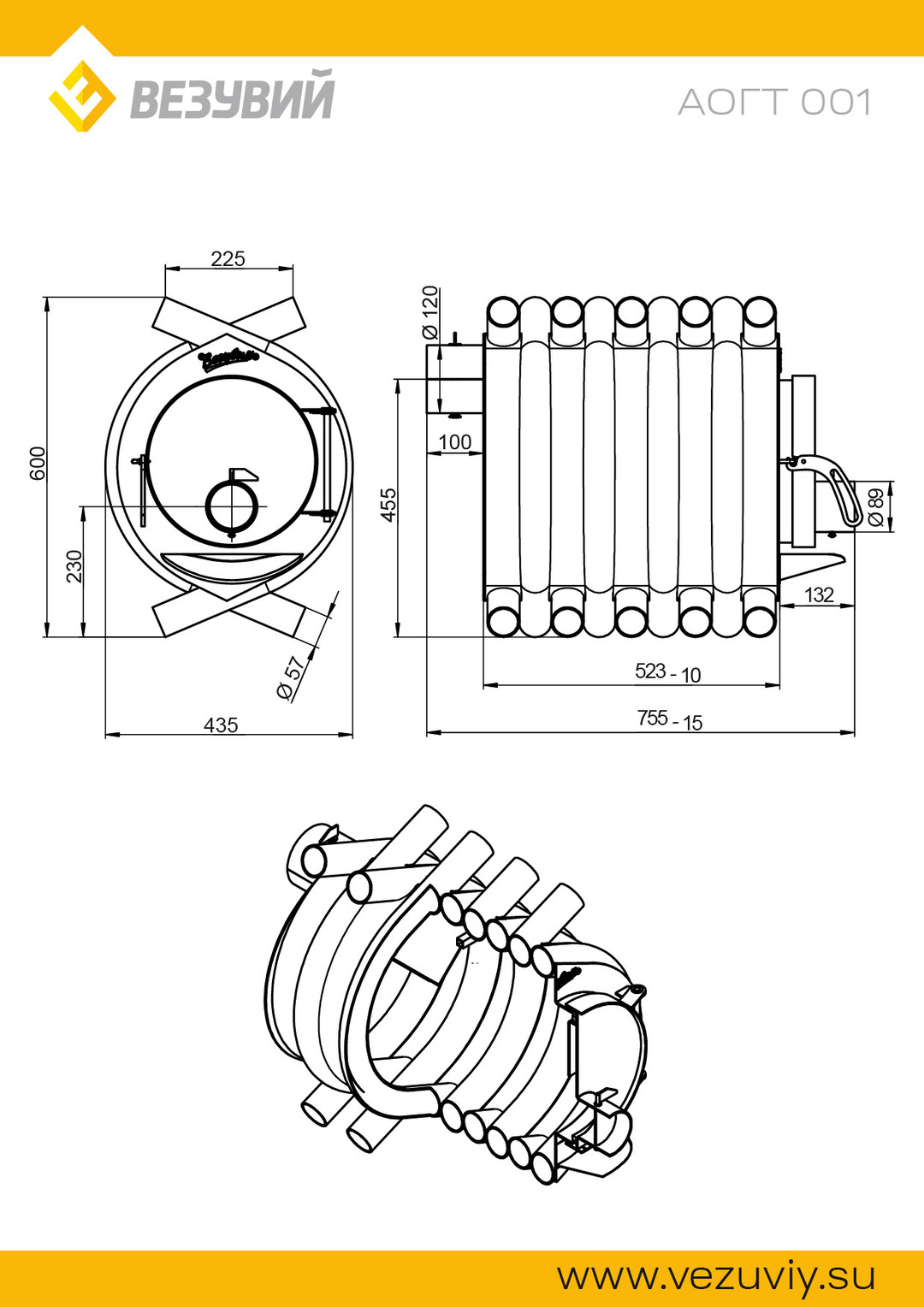 Печь отопительная ВЕЗУВИЙ АОГТ 001 предназначена для обогрева рабочих и бытовых помещений (дачи, гаражи, СТО, мастерские, теплицы и т. п.). Её мощность позволяет обогревать помещения объемом до 150 м³.