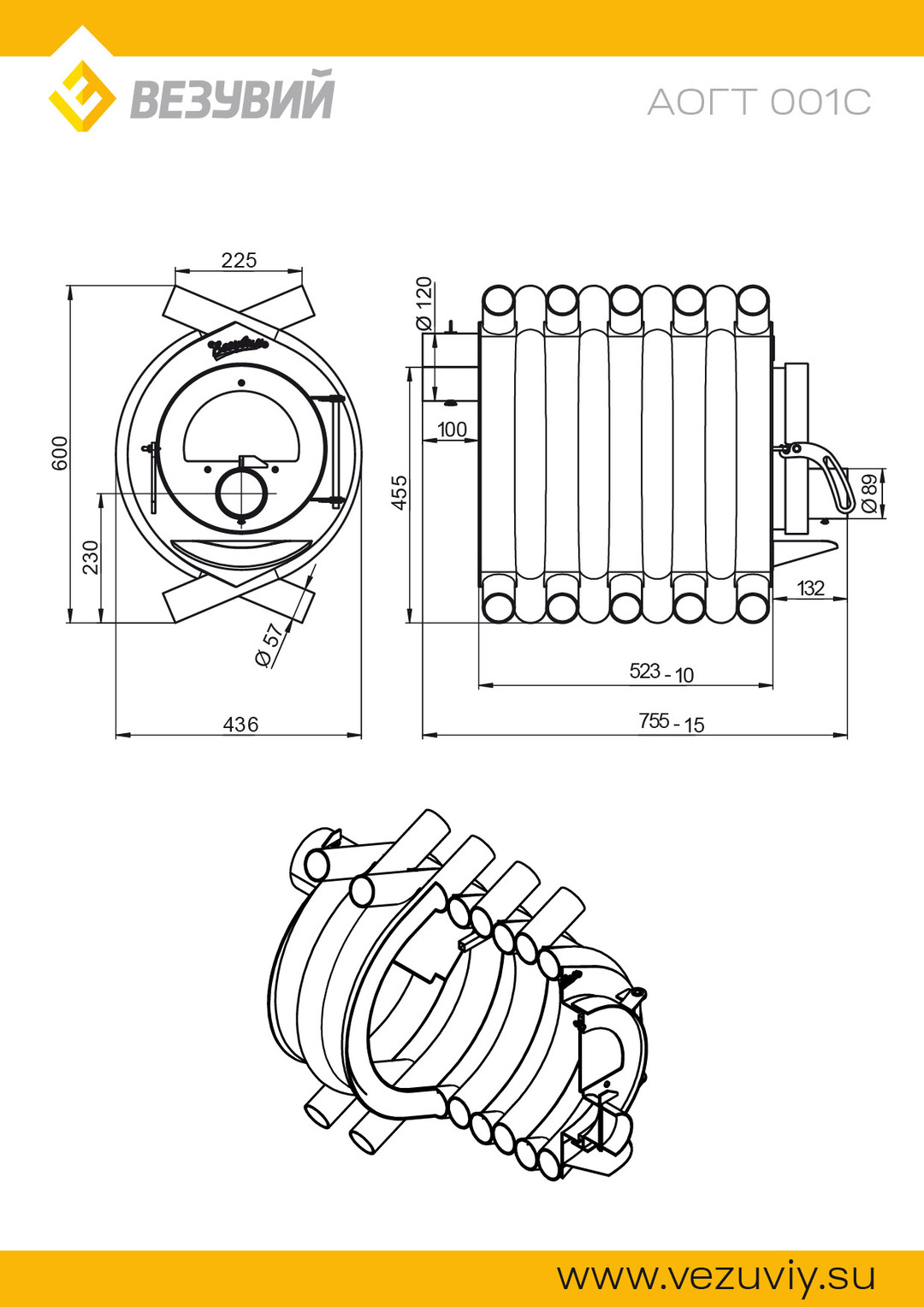 Печь отопительная ВЕЗУВИЙ АОГТ 001С предназначена для обогрева рабочих и бытовых помещений (дачи, гаражи, СТО, мастерские, теплицы и т. п.). Её мощность позволяет обогревать помещения объемом до 150 м³.