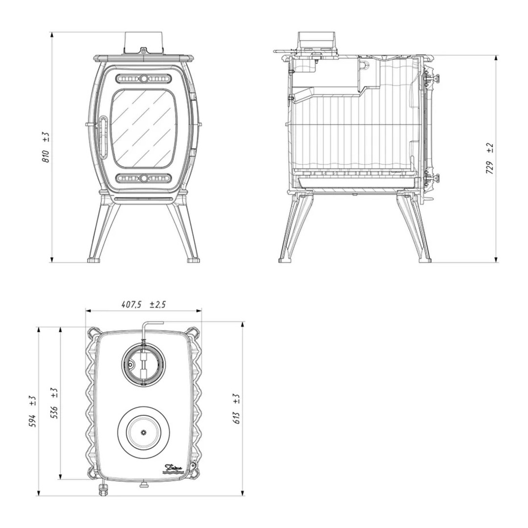 - Размер печи (ВхДхШ): 810х595х408 мм