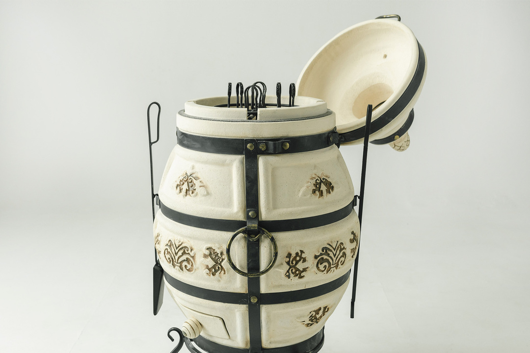 Модель сочетает традиционные принципы приготовления в тандыре с современными решениями, направленными на удобство эксплуатации. Использование шамотной глины высокотемпературного обжига обеспечивает прочность, экологичность и срок службы более 10 лет.