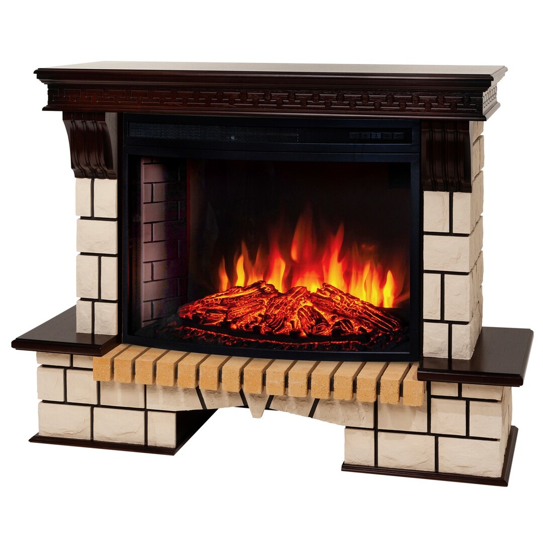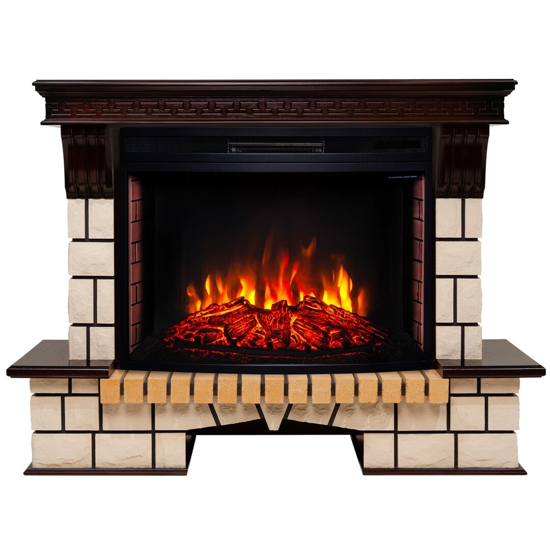 Пристенный электрокамин в кантри-стиле включает в себя обрамление Stone Panoramic. Прекрасный вариант в коттедж или частный дом. А владельцы квартир с помощью этого камина смогут даже в центре города создать иллюзию загородной жизни.