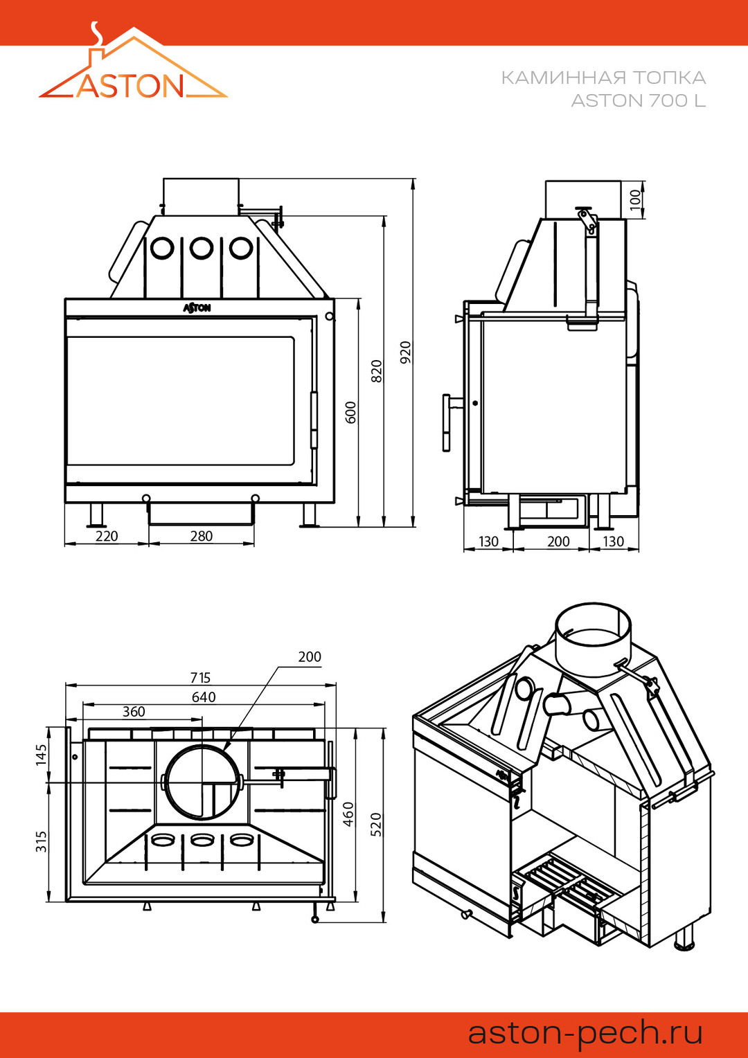 Стальная каминная топка АСТОН 700 L правая рассчитана на прогрев помещений объёмом до 250 кубических метров. Топочная камера изготовлена из особо прочной котловой стали, рассчитана на пристенное размещение.