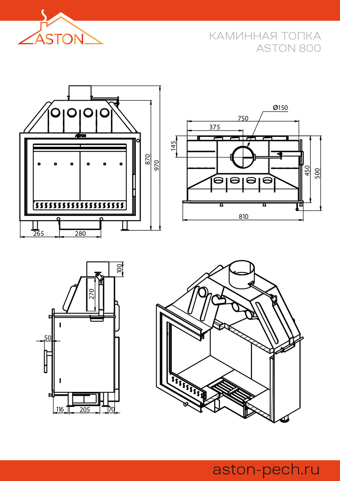 Стальная каминная топка Астон 800 рассчитана на прогрев помещений объёмом до 330 кубических метров. Топочная камера изготовлена из особо прочной котловой стали, рассчитана на пристенное размещение.