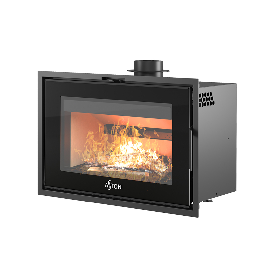 Стальная каминная топка АСТОН, рассчитанная на подовое горение дров.
