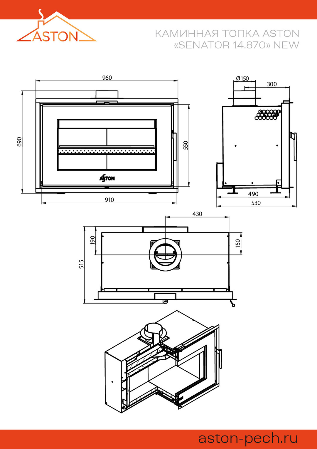 Aston Senator 14.870 каминная топка стальная 14кВт