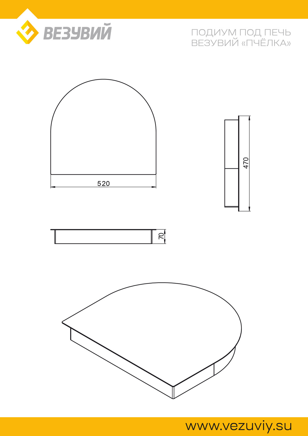 Подиум под банную печи Пчёлка - спроектирован для устойчивого размещения печи, обеспечивает безопасный зазор между полом и печью.